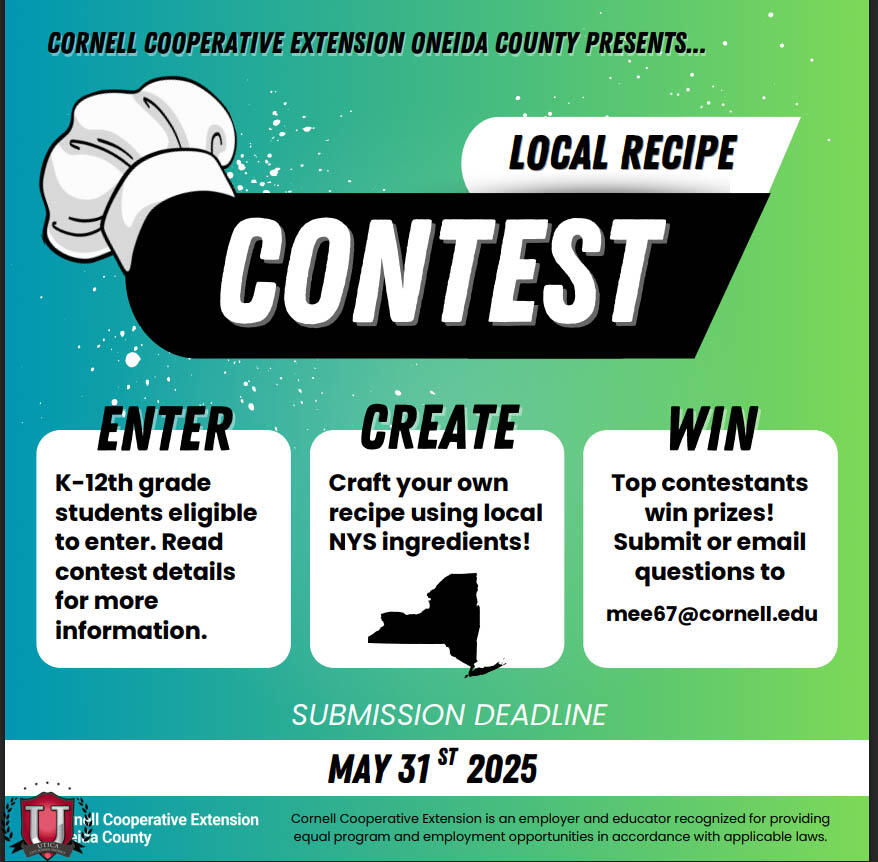 โรงเรียนมัธยมโดโนแวนและ UCSD ทุกคนขอแสดงความยินดีกับนักเรียน ไคเดน มอร์ร็อค และ เจคอบ โจว ที่ได้รับรางวัลชนะเลิศในการแข่งขันสูตรอาหารท้องถิ่น ซึ่งจัดโดย Cornell Cooperative Extension of Oneida County นักเรียนในชั้นเรียนวิทยาศาสตร์ครอบครัวและผู้บริโภคของมิสเตอร์อดัม โคโลน ได้เข้าร่วมการแข่งขัน โดยนักเรียนต้องรังสรรค์สูตรอาหารต้นตำรับของตนเองโดยใช้วัตถุดิบท้องถิ่นของรัฐนิวยอร์ก