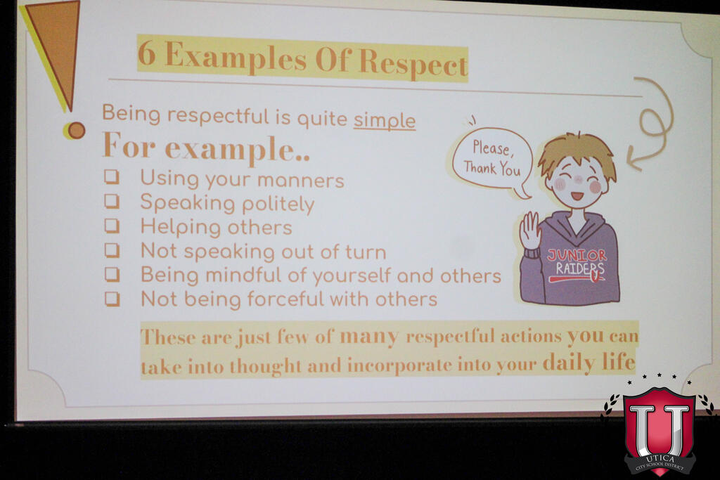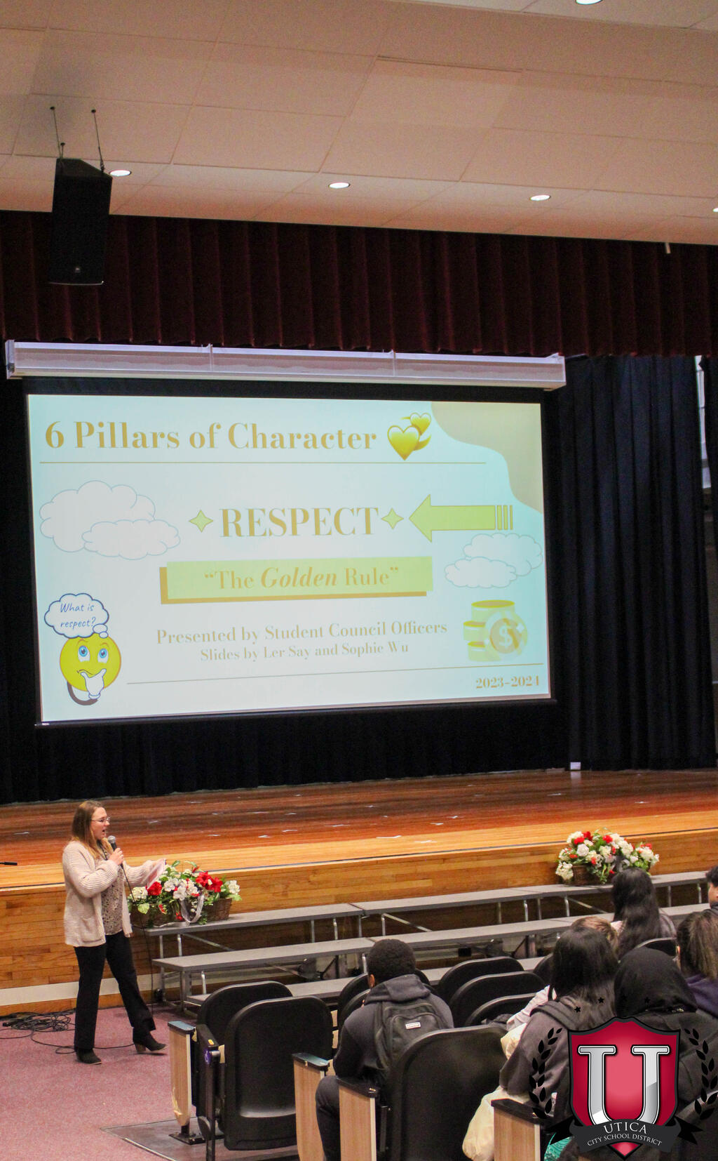 สภานักเรียนได้นําเสนอ 6 เสาหลักของอุปนิสัยให้กับนักเรียน การนําเสนอนี้มุ่งเน้นไปที่ความหมายของความเคารพ