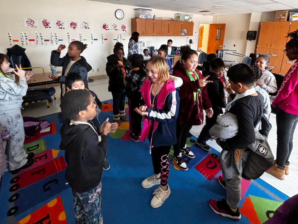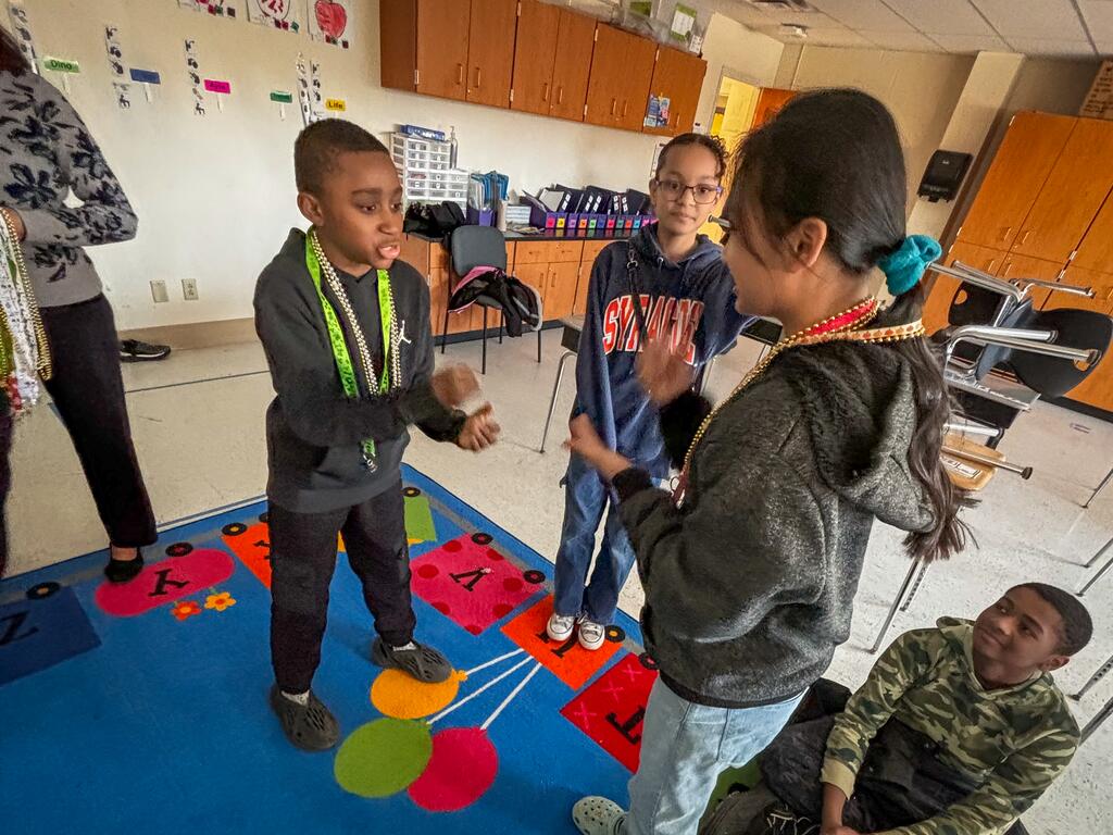 นักเรียน MLK ในโครงการ RED เล่นเกมเป่ายิ้งฉุบ นักเรียนแต่ละคนเริ่มต้นด้วยสร้อยคอเส้นเดียว พวกเขาต้องหานักเรียนคนอื่นที่ถือสร้อยคอเส้นเดียวกันและเล่นเกมเป่ายิ้งฉุบ ผู้ชนะจะได้สร้อยคอของนักเรียนคนอื่นๆ คนที่ถือสร้อยคอเส้นสุดท้ายเป็นผู้ชนะ นักเรียนเชียร์กันและกันและทำกิจกรรมเพื่อสังคมและเสริมสร้างชุมชน ทั้งหมดนี้เกิดขึ้นในขณะที่สนุกสนานกัน!