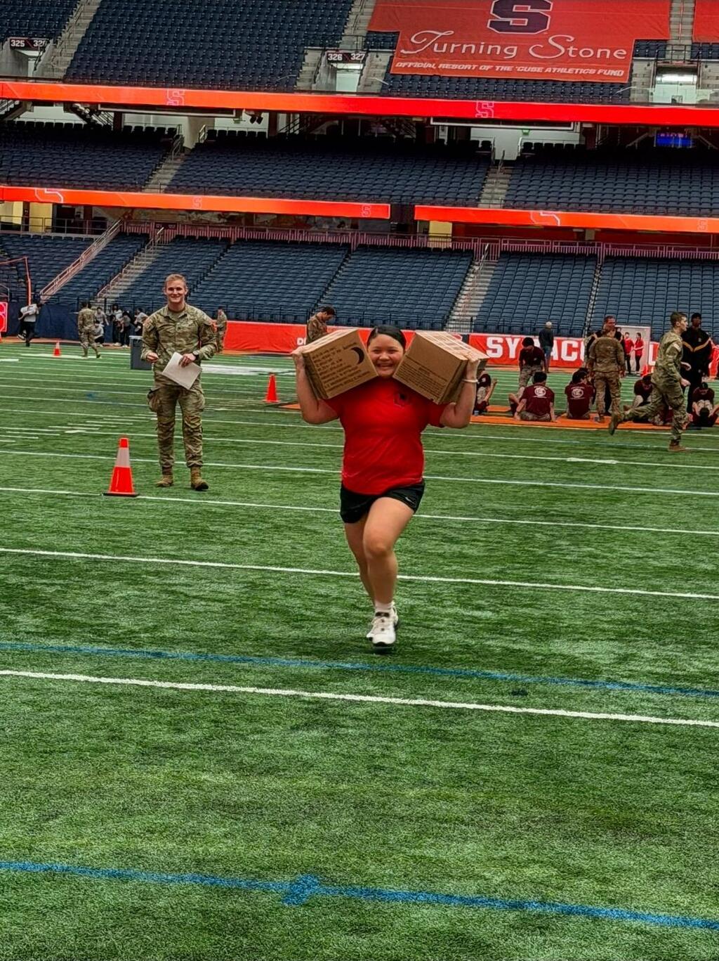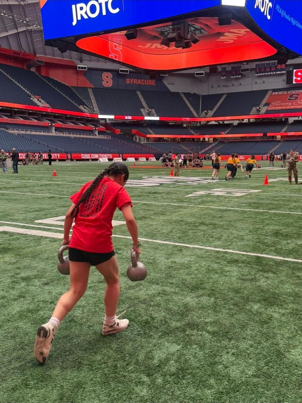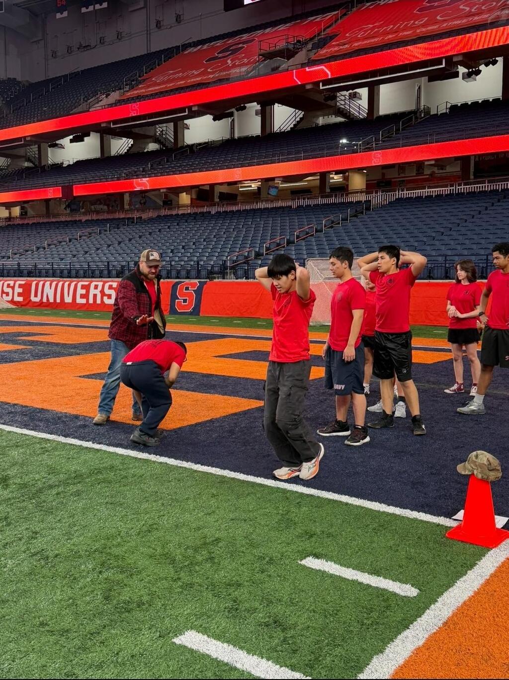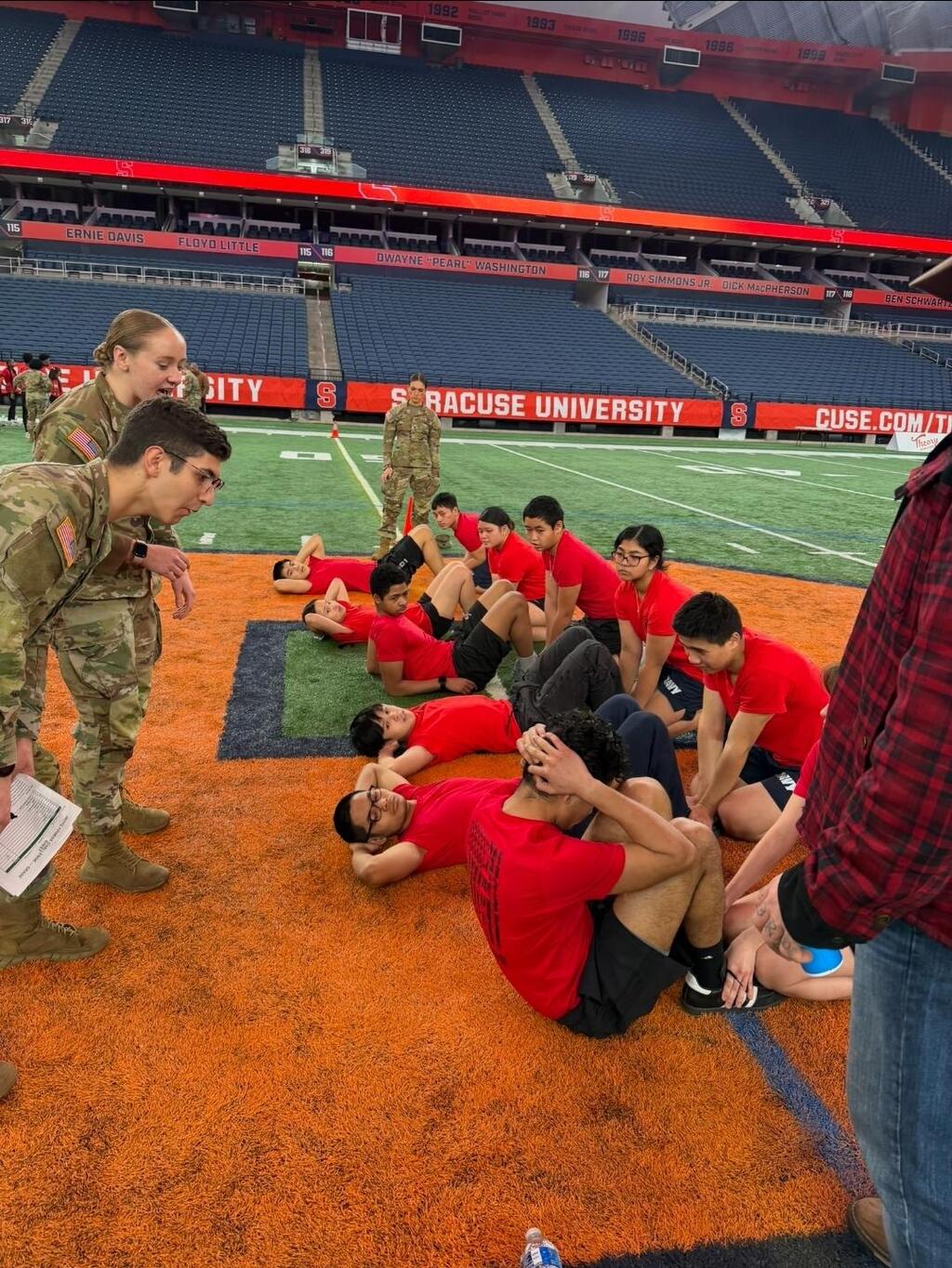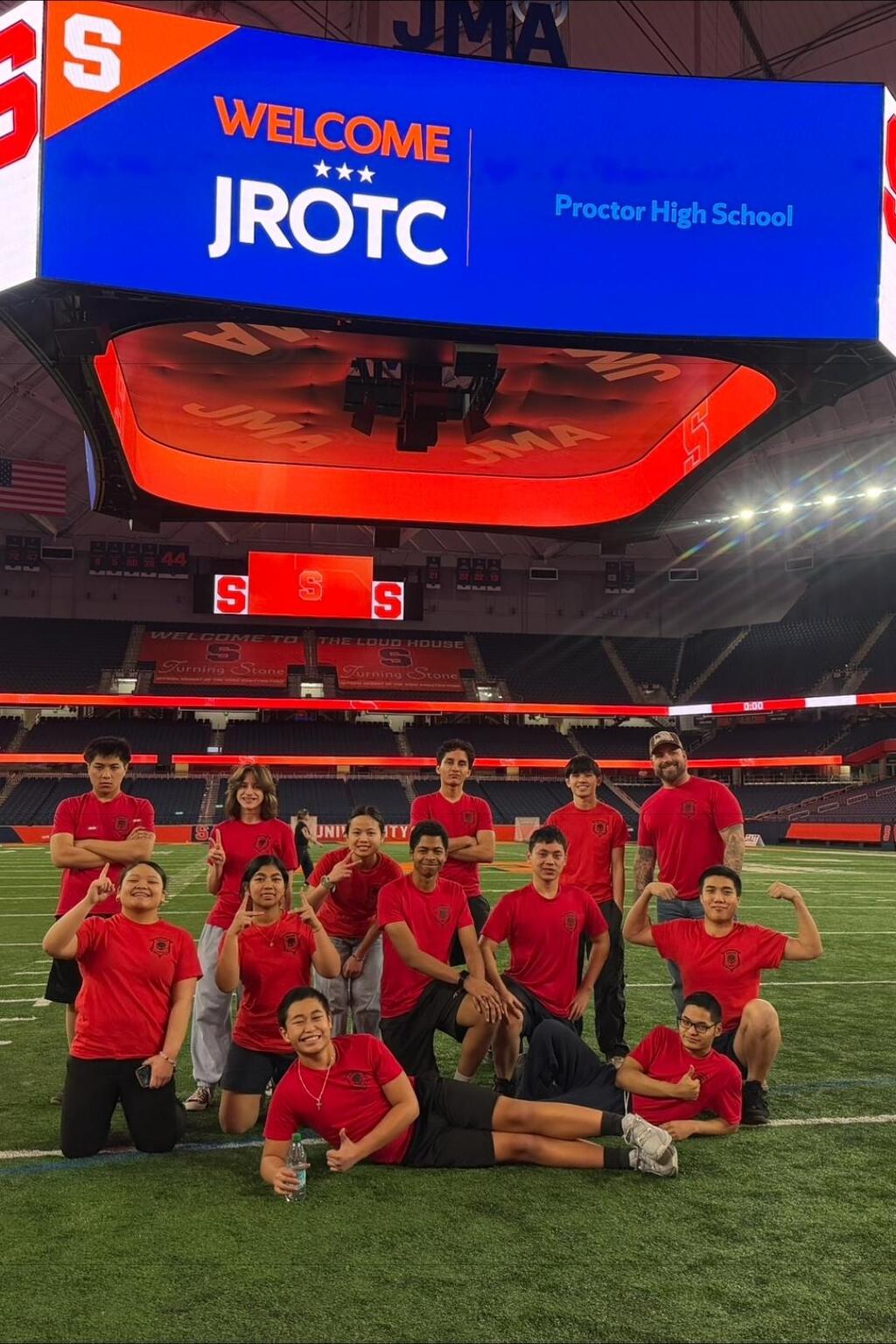 Proctor High School cadets recently traveled to Syracuse University for an action-packed day at the Annual Physical Fitness Challenge. The trip offered a fantastic look into future opportunities, featuring insightful presentations on university enrollment, academic scholarships and the unique path of life as an Army or Air Force ROTC cadet. After touring the National Veterans Resource Center, the team marched to the JMA Wireless Dome to put their training to the test. Competing in 10 grueling events against 11 other high school programs, our cadets showcased incredible grit and teamwork, ultimately securing an impressive 4th place finish overall. We are incredibly proud of their performance and dedication!